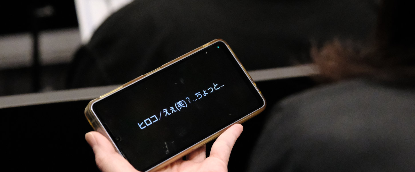 字幕データの公開設定で文字の明るさを下げたり、表示用端末の画面輝度を下げたりすることで、完全暗転時でもほぼ気にならない状態にすることができます。ただし、本番中にタブレットやスマートフォンを見ているという行為そのものに抵抗感をお持ちの方もいらっしゃいますので、事前の告知・当日会場内での掲示やアナウンスで周知をおこなうことが大切です。